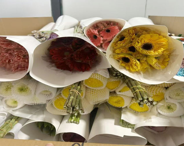 3、云南金河花卉有限公司多年来与(花卉基地、拍卖市场、供货商)建立了稳定的合作关系,大量从昆明斗南地区的花卉基地、花农和花卉市场采集调货,从而保证稳定的质量,合理花价。5、我们立足于斗南,货发全国各大小批发商,婚庆公司,花店,并出口(出口前准备工作,海关抽样检查